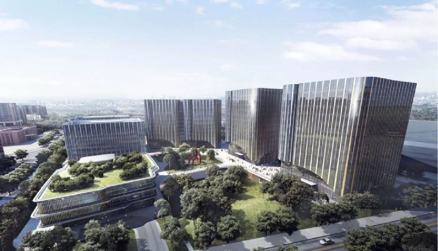 科技園項(xiàng)目一期總建筑面積約22.5萬(wàn)平方米,包含6棟研發(fā)樓和2層地下車(chē)庫(kù)(地下共3層,一二期地下相互聯(lián)通),還設(shè)有下沉廣場(chǎng)和商鋪,敞亮的下沉廣場(chǎng)將所有建筑連在了一起。T6樓設(shè)置了戶(hù)外屋頂花園,特別鋪設(shè)